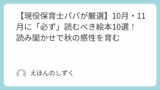 秋の深まりとともに、絵本を通して子どもたちの心も豊かに育っていくことでしょう。素敵な秋の読み聞かせタイムをお過ごしください!