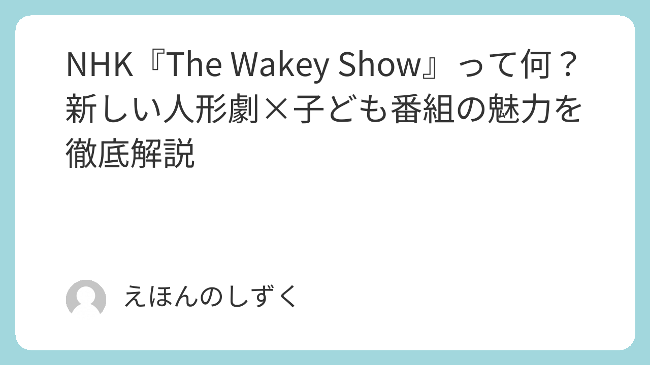 2025年春からNHK Eテレでスタートした 『The Wakey Show(ザ・ウェイキー・ショウ)』 は、 いま話題の新しい子ども番組です。